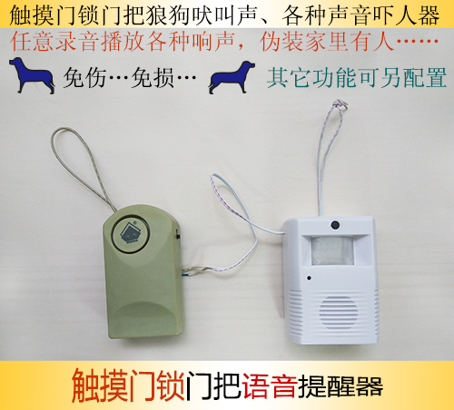 触摸门锁门把语音提醒器:可任意更新录音2~25秒内。播放各种响声,伪装家里有人,常用播放语言(建议设置延迟2~5秒后播音):