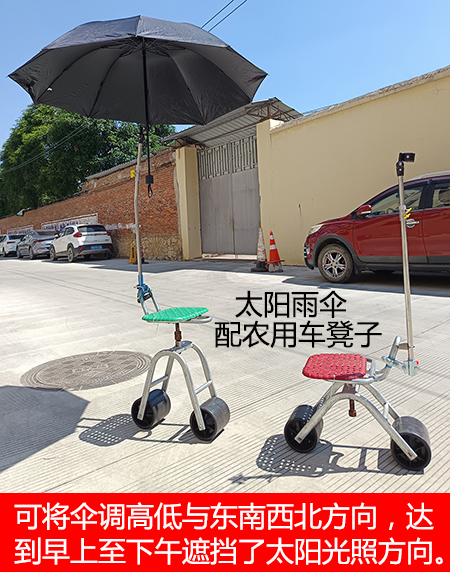 凳子车,可配上伞支架,可将伞面调向东南西北方向,遮挡上午与下午阳光。各厂家伞与家里旧伞都适用。